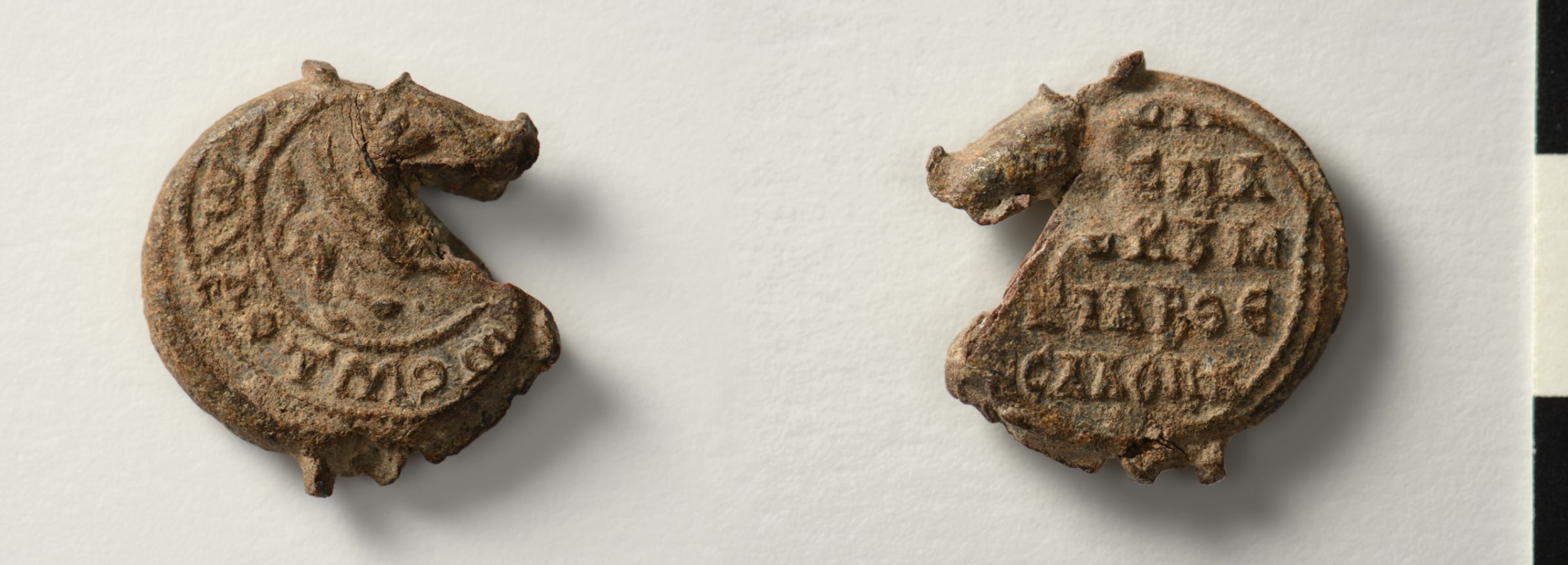 A Lead Seal with the depiction of a walking griffin on the obverse. On the reverse of the seal an inscription of five lines which can be read as "Lord, help your servant N., protospatharios and kommerkiarios of Thessalonica"